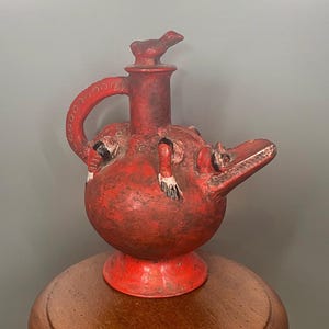 Ancient and rare primitive wooden sculpture from Southeast Asia, depicting five nude figures in a folk, naive, ritual, or sacred art style. 17 cm
