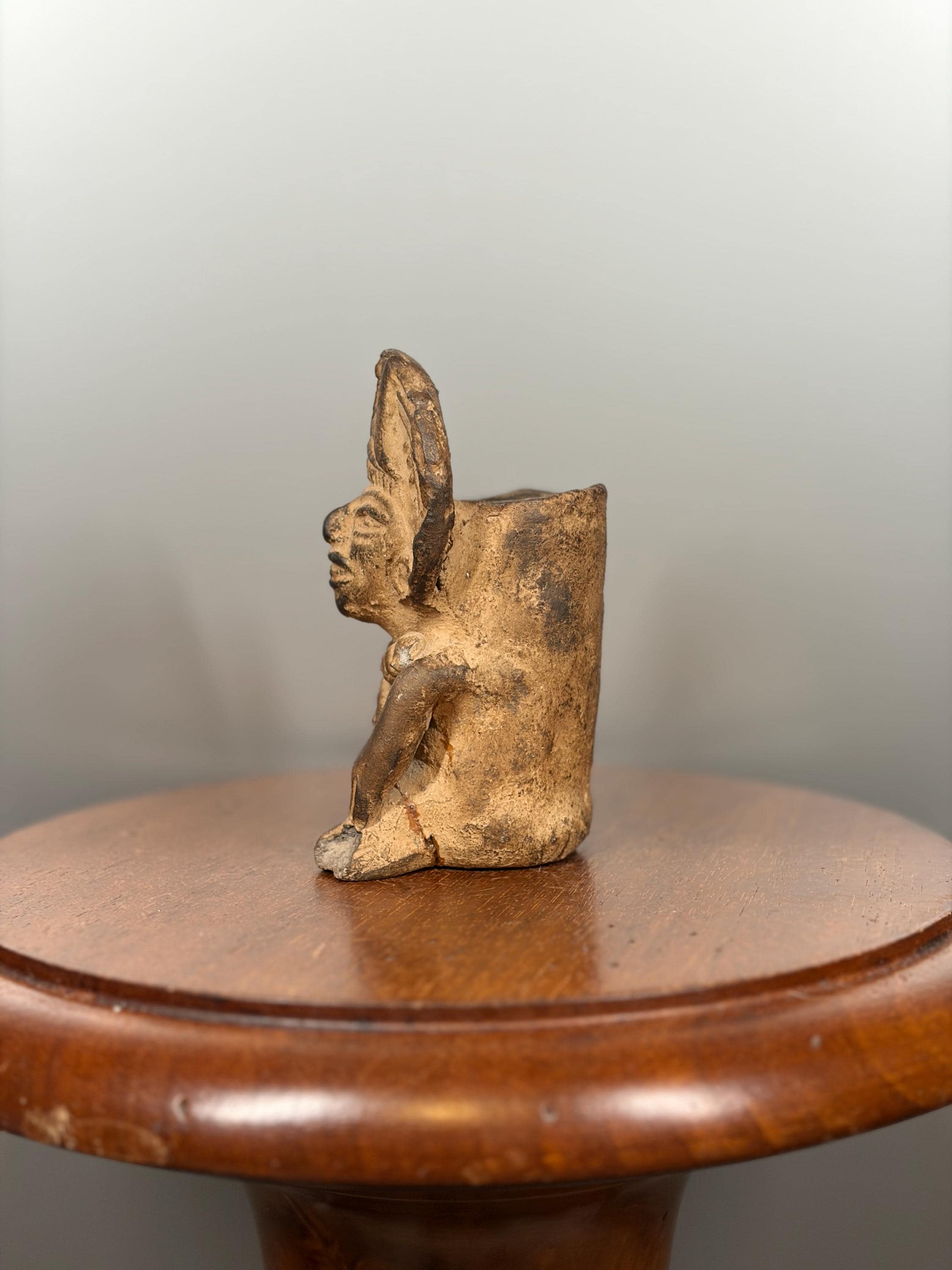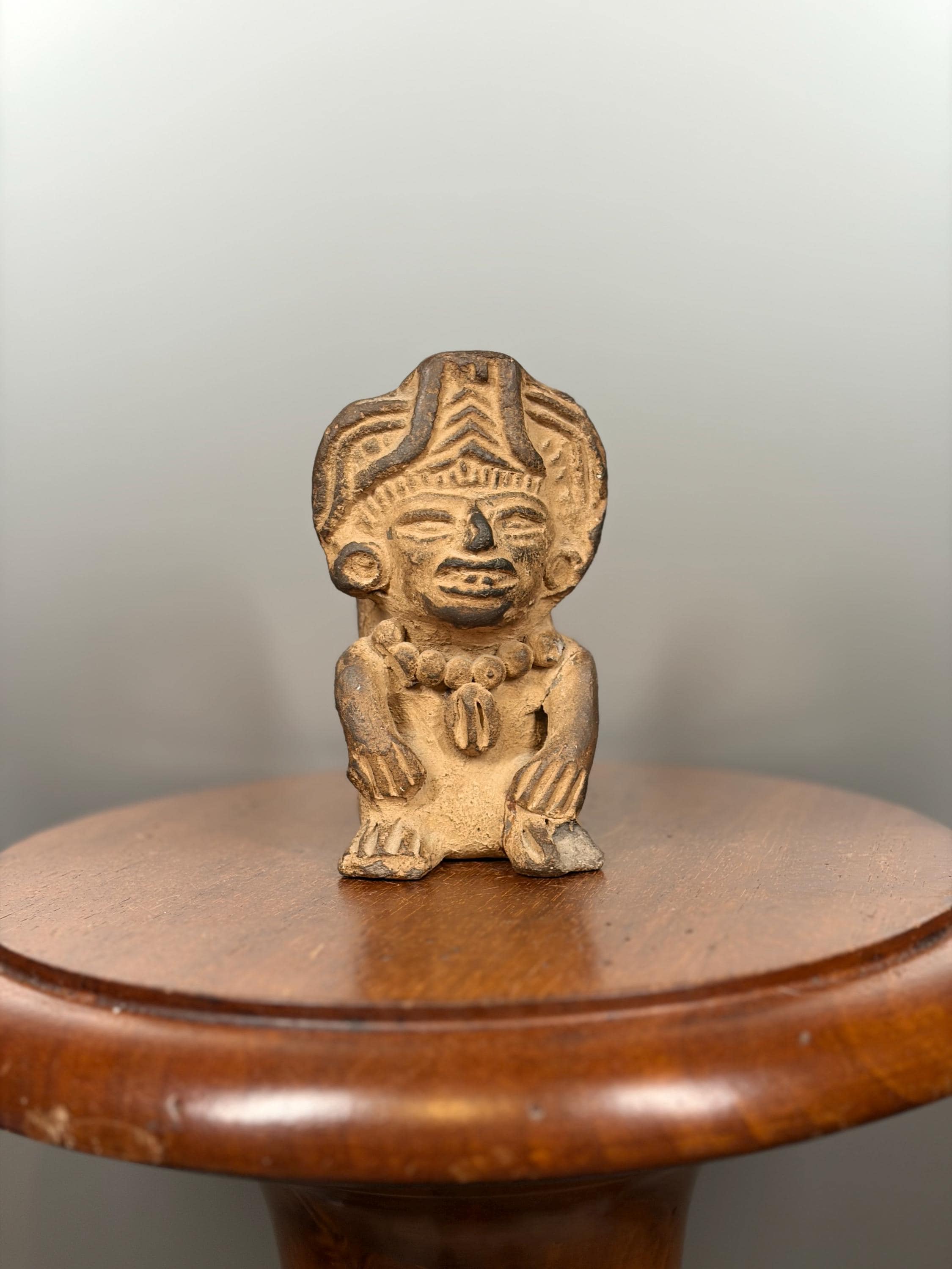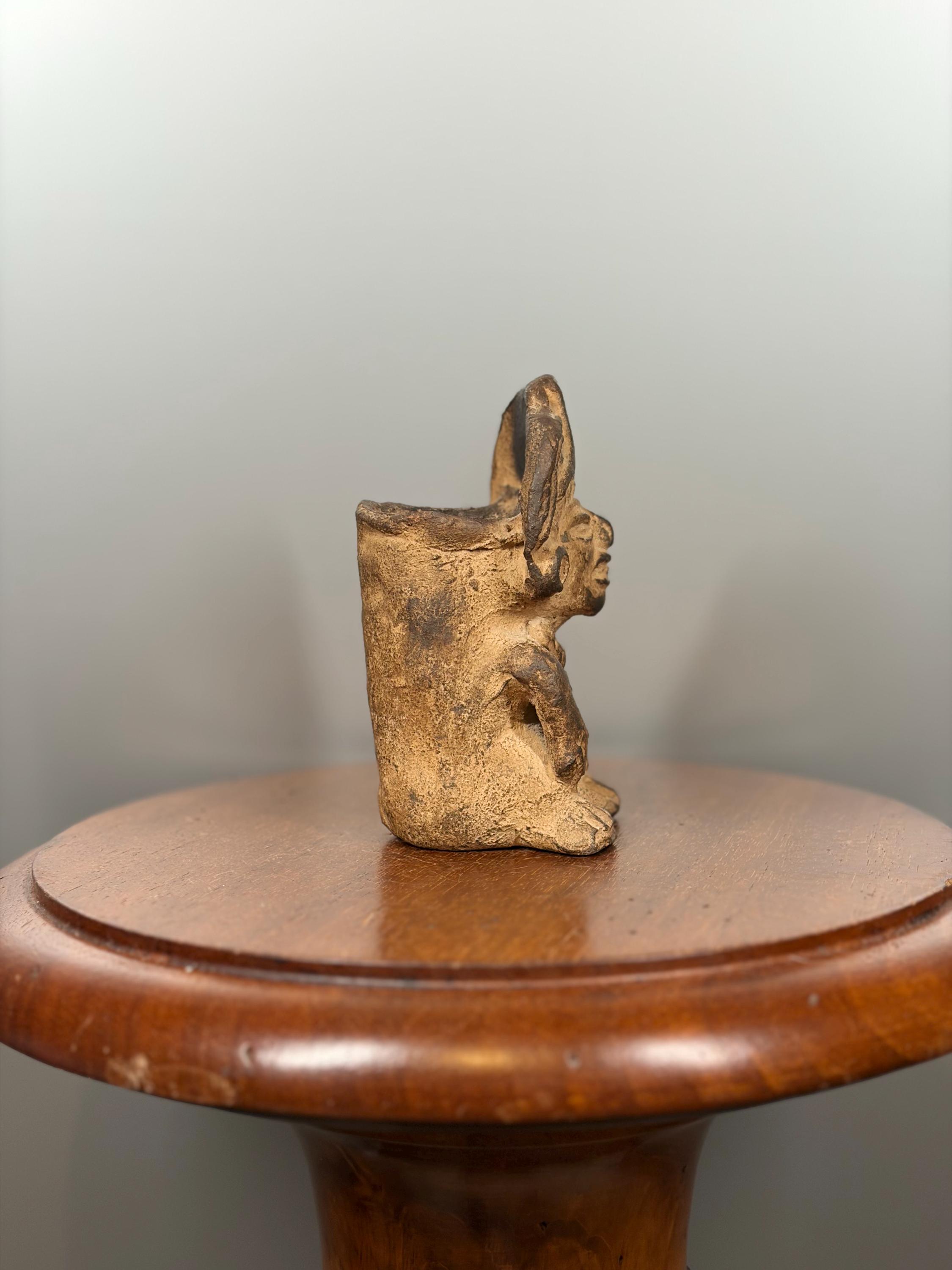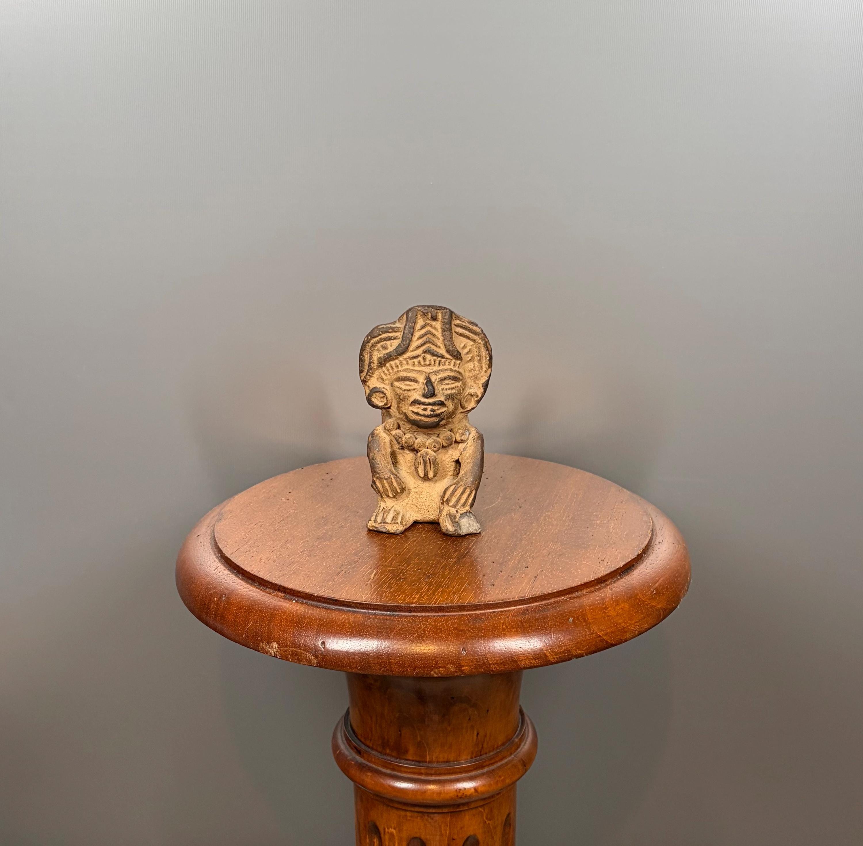 Antique terracotta statuette in the style of Pre-Columbian art, 12 cm. Rare ethnic collectible, Mayan, Incan or Aztec.